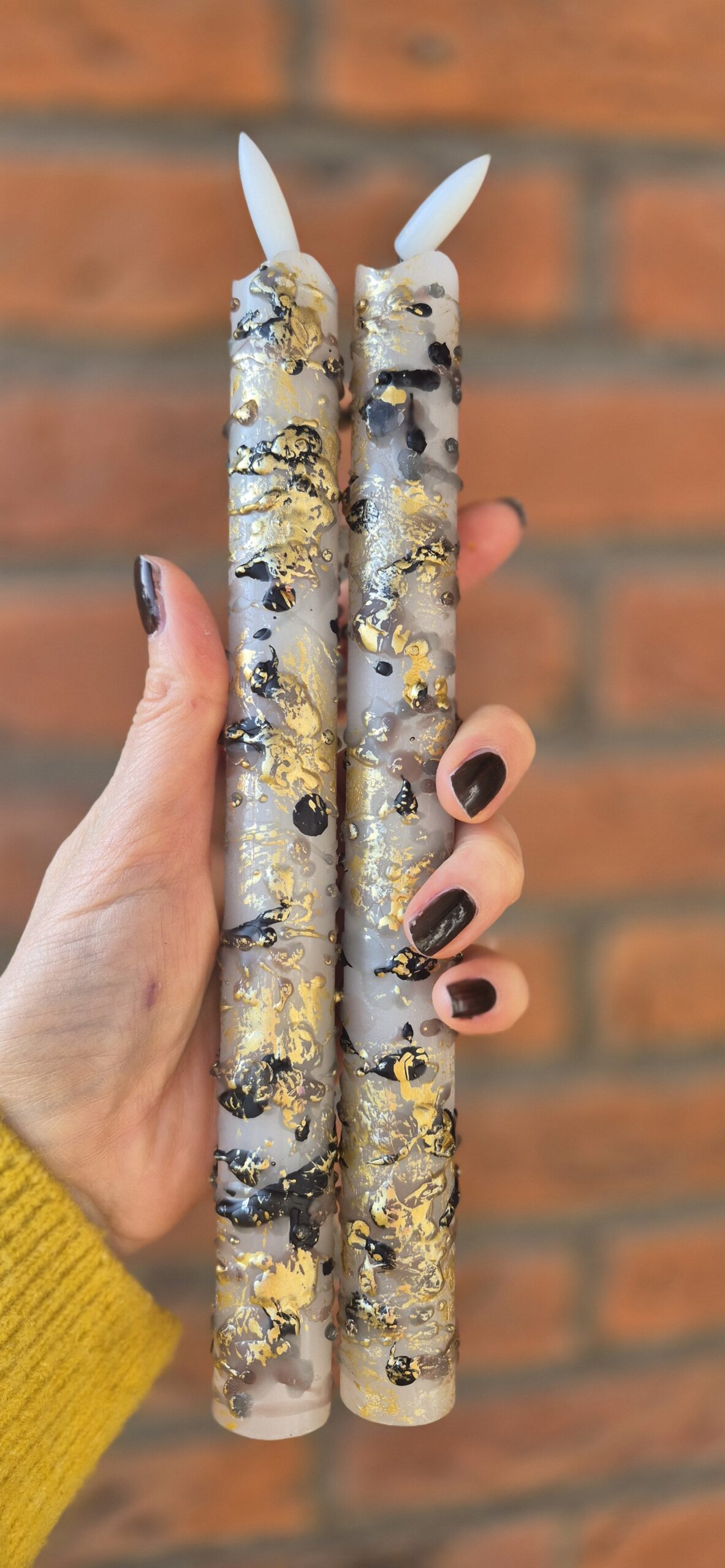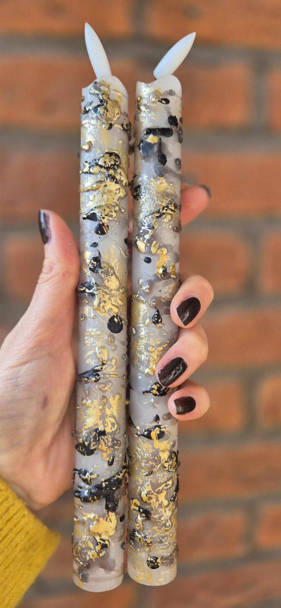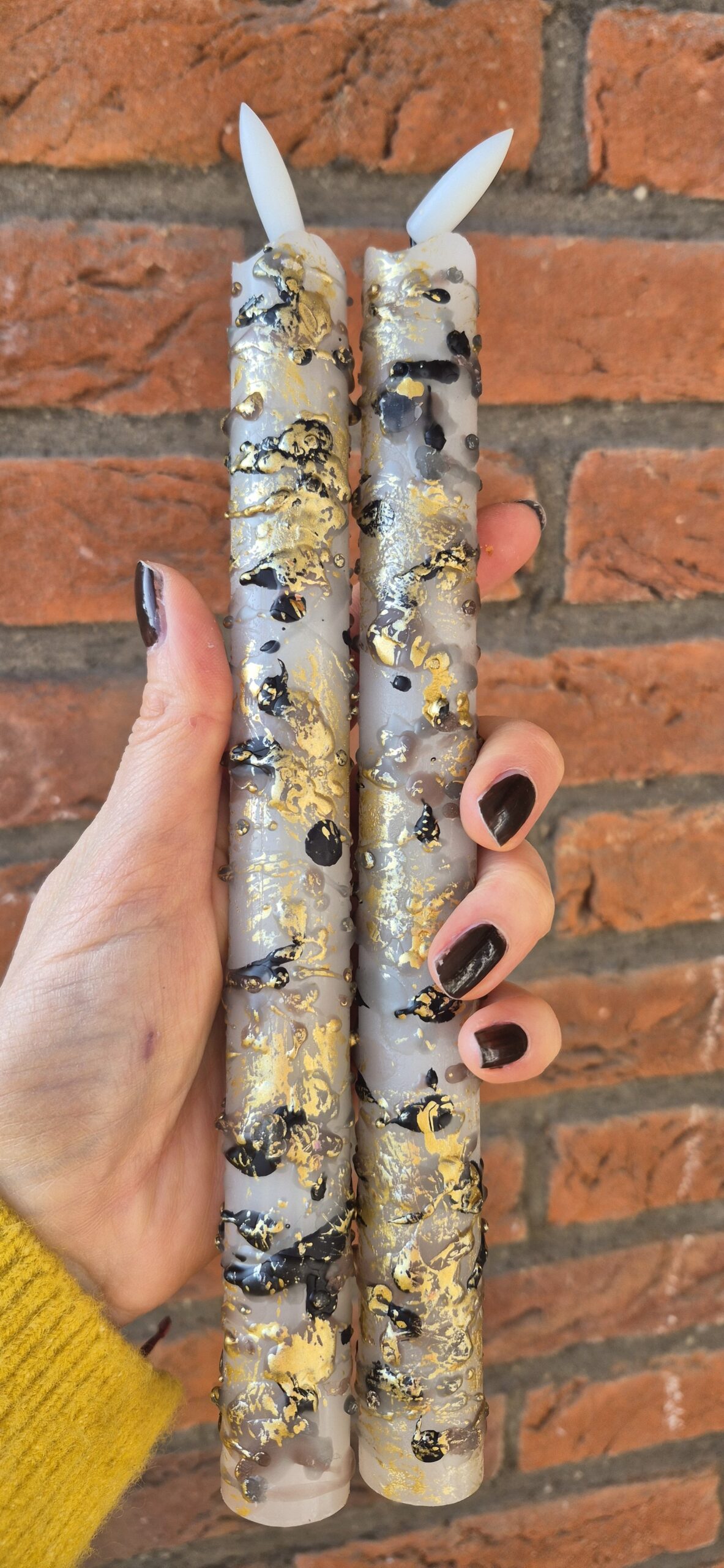 LED dinerkaarsen set – grijs met goud & zwart | handgemaakt | timerfunctie