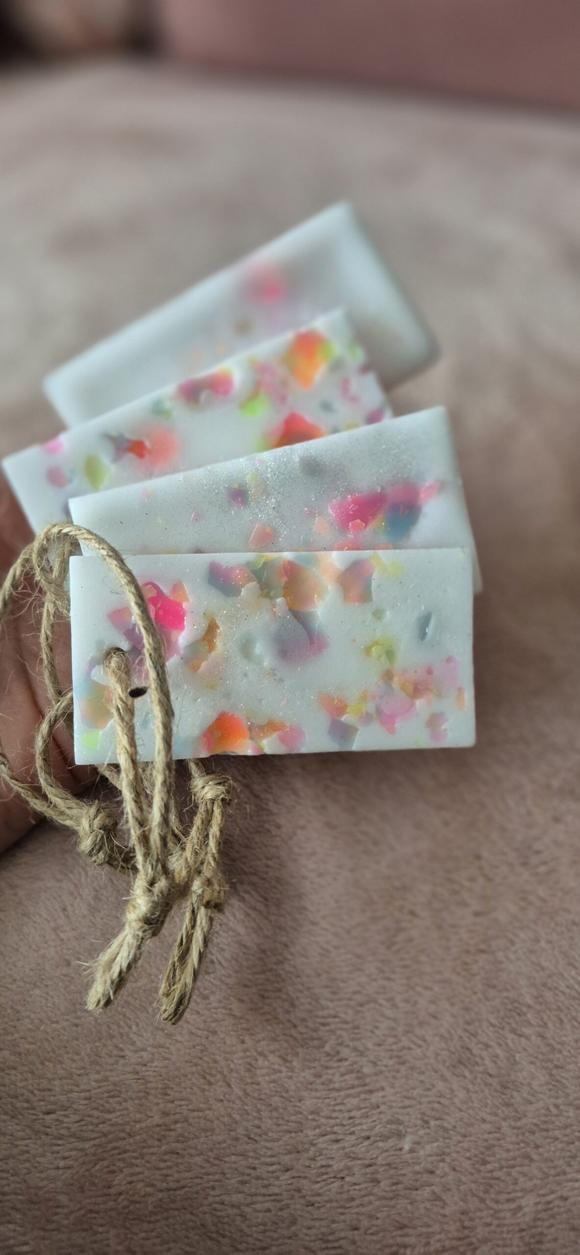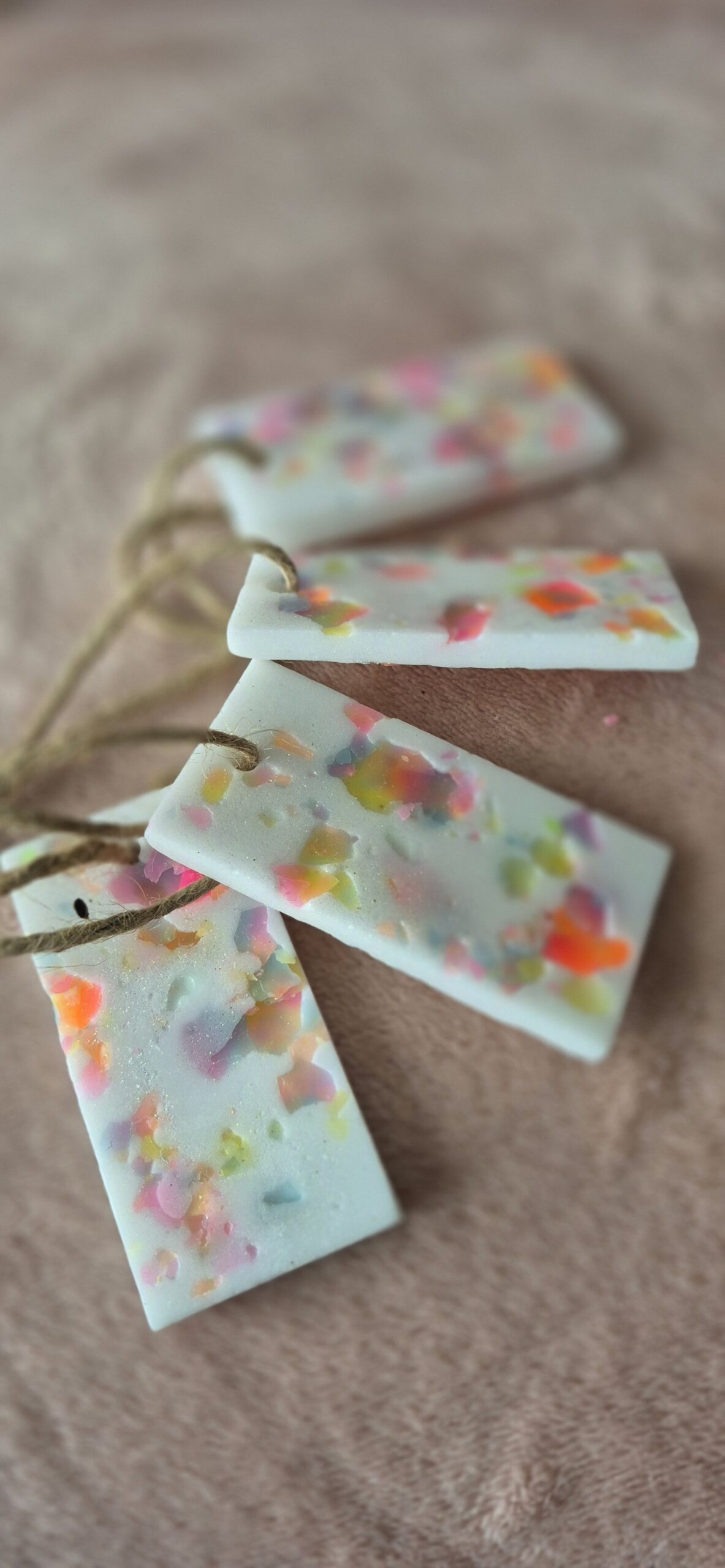 Geurhanger 8 cm met touw – vrolijke kleuren & glitters