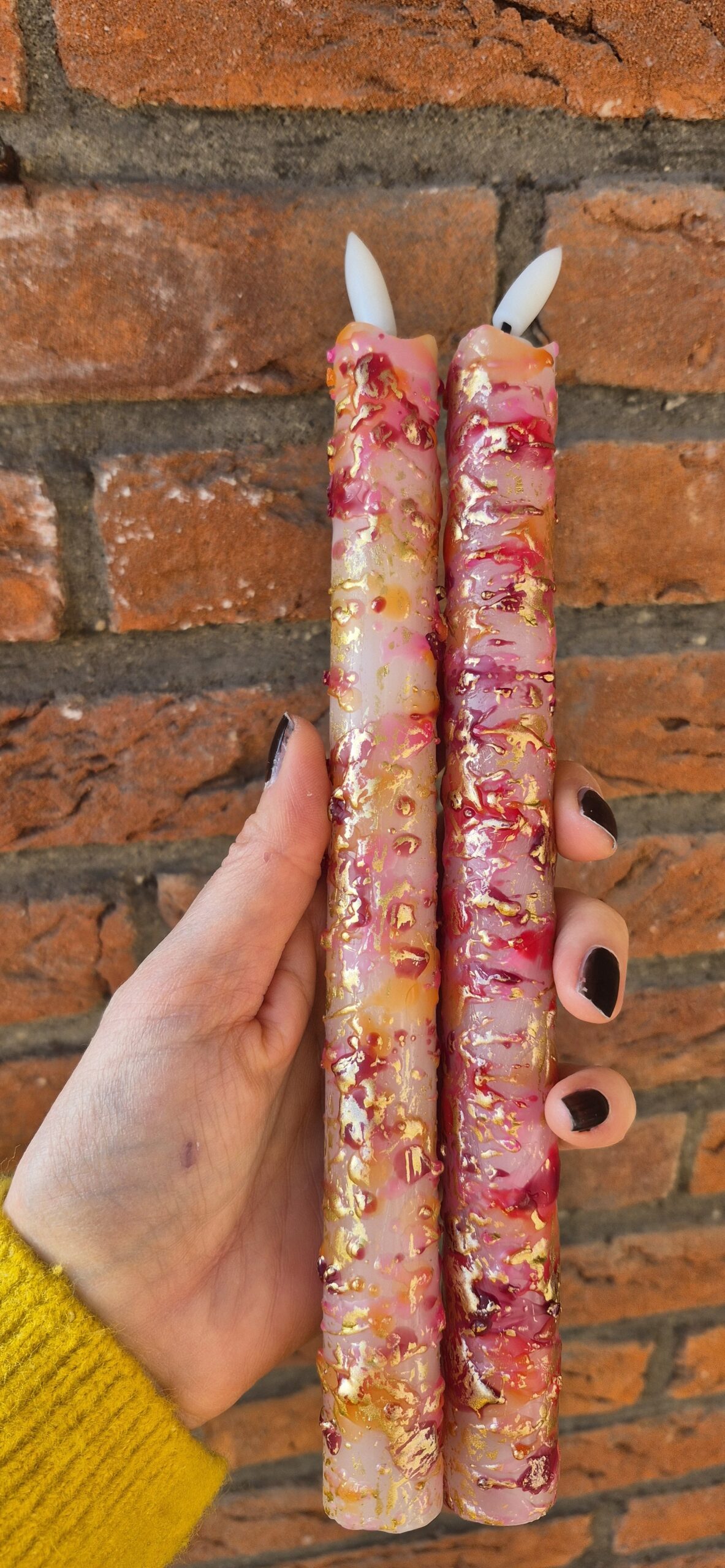 Elke kaars heeft een unieke, handgemaakte uitstraling, waardoor geen twee exemplaren exact hetzelfde zijn. Dit geeft de set een luxe en ambachtelijk karakter dat prachtig aansluit bij een warm en liefdevol interieur.